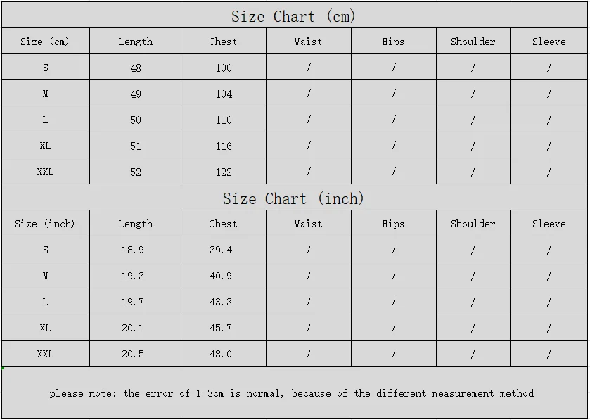Size Length (cm) Length (inch)