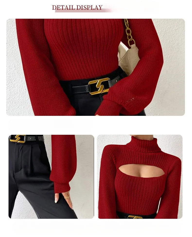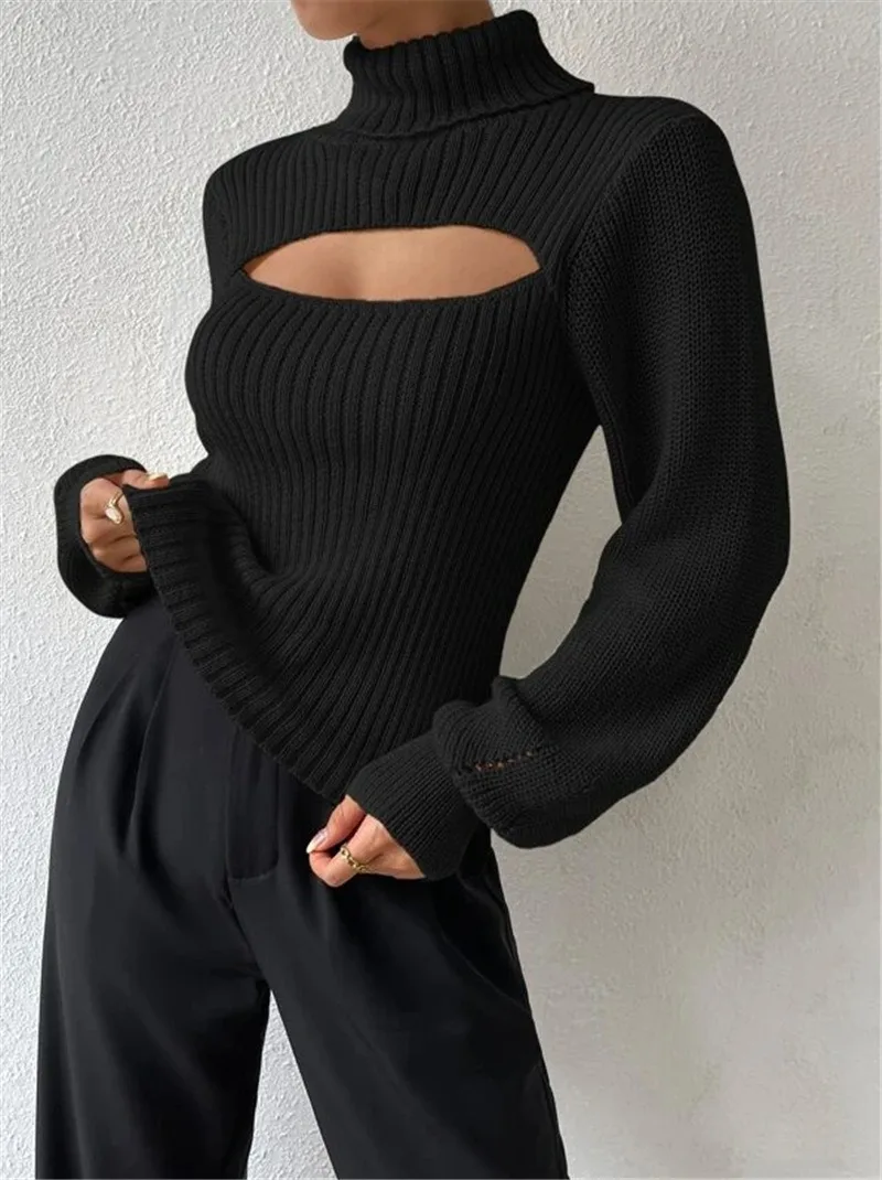 Delicate hollow-out accents add a subtle touch of texture and sophistication, while the high-stretch fabric ensures effortless movement and comfort. This sweater brings a quiet sense of luxury to everyday life.