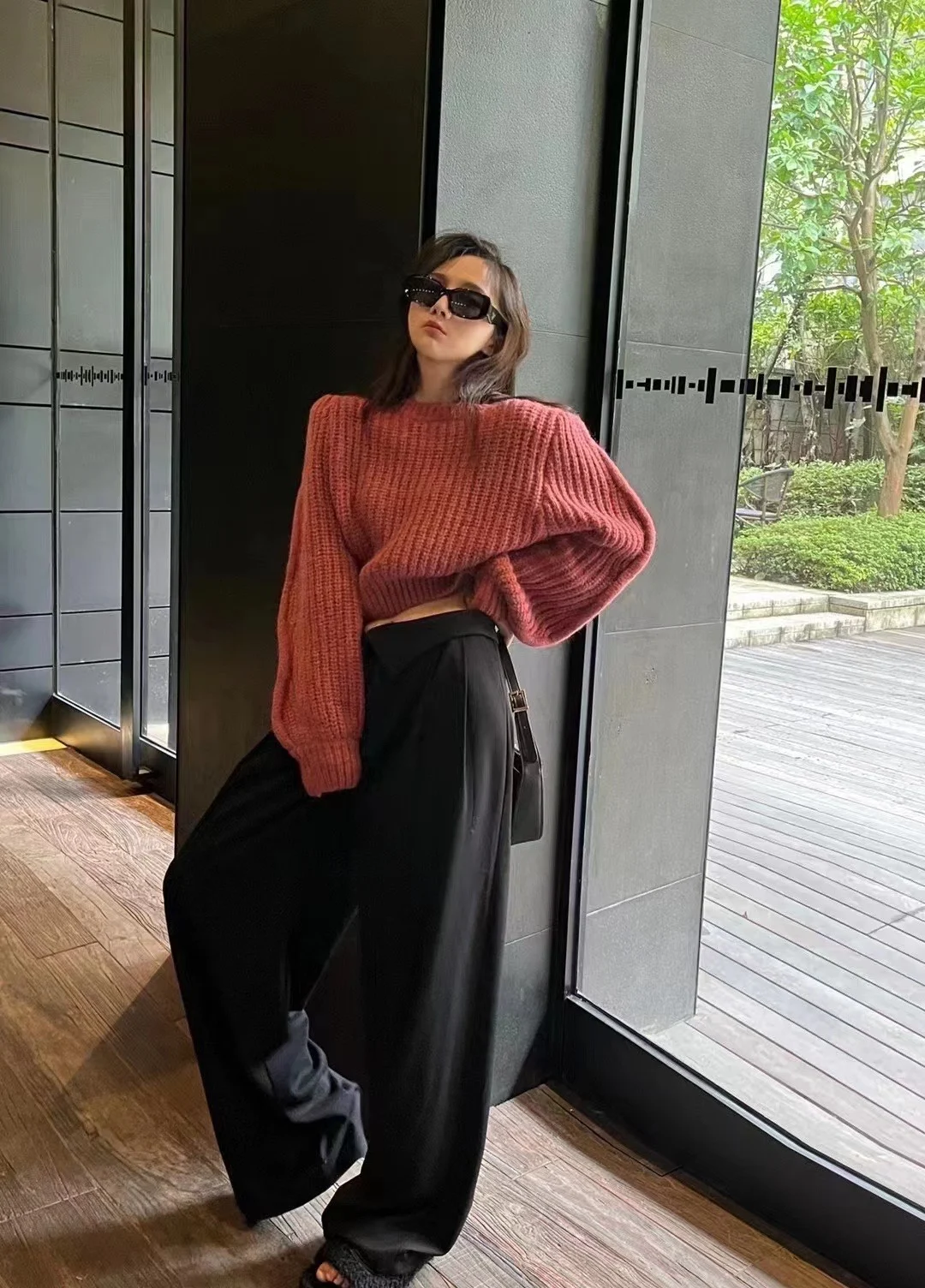 Crafted from premium 100% polyester yarn, this sweater offers a smooth, breathable texture that keeps its shape beautifully wear after wear. Designed with a classic O-neckline and graceful puff sleeves, it brings just the right touch of femininity to your cool-weather wardrobe.